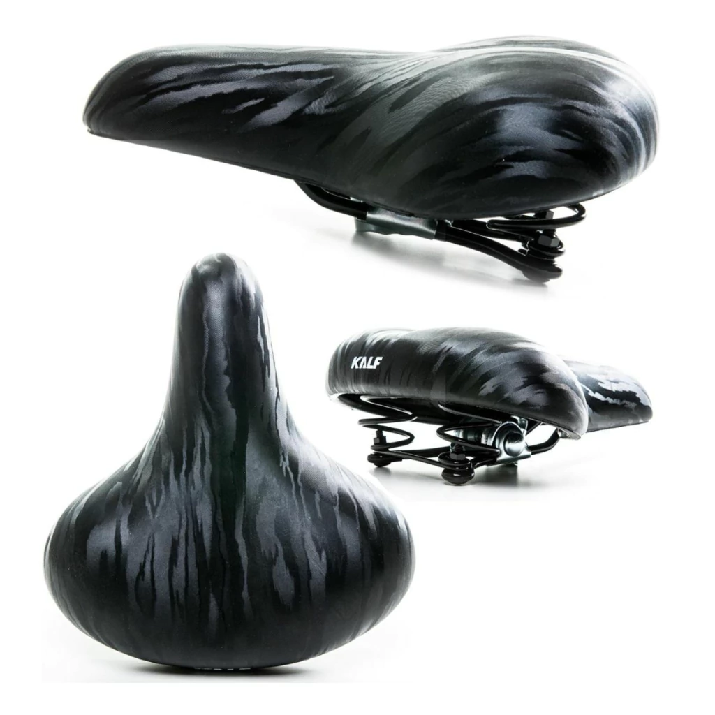 Selim para bicicleta modelo com 2 molas 328F cor preto da marca Kalf em espuma macia e confortável, pesa aproximadamente 735 gramas.