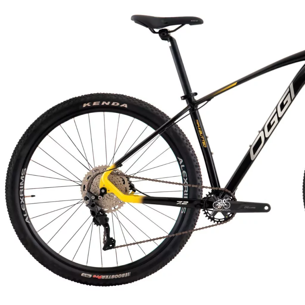 QUADRO: MTB em alumínio 6061 t6 tratado triplo butted p/cambio dianteiro side swing c/ponteria post mount p/eixo traseiro passante (e thru axle 12 x 148 mm) e c/ rota interna dos cabos e cabeçote (head tube) tapered