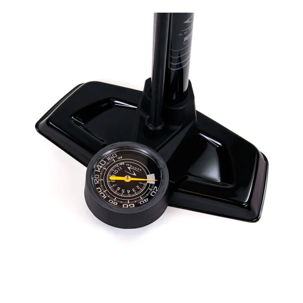 Bomba Serfas com alto poder de vazão e enchimento, excelente para bicicletas Speed com necessidade de alcance maximo 160psi de pressão nos pneus sem esforço e rapidez.