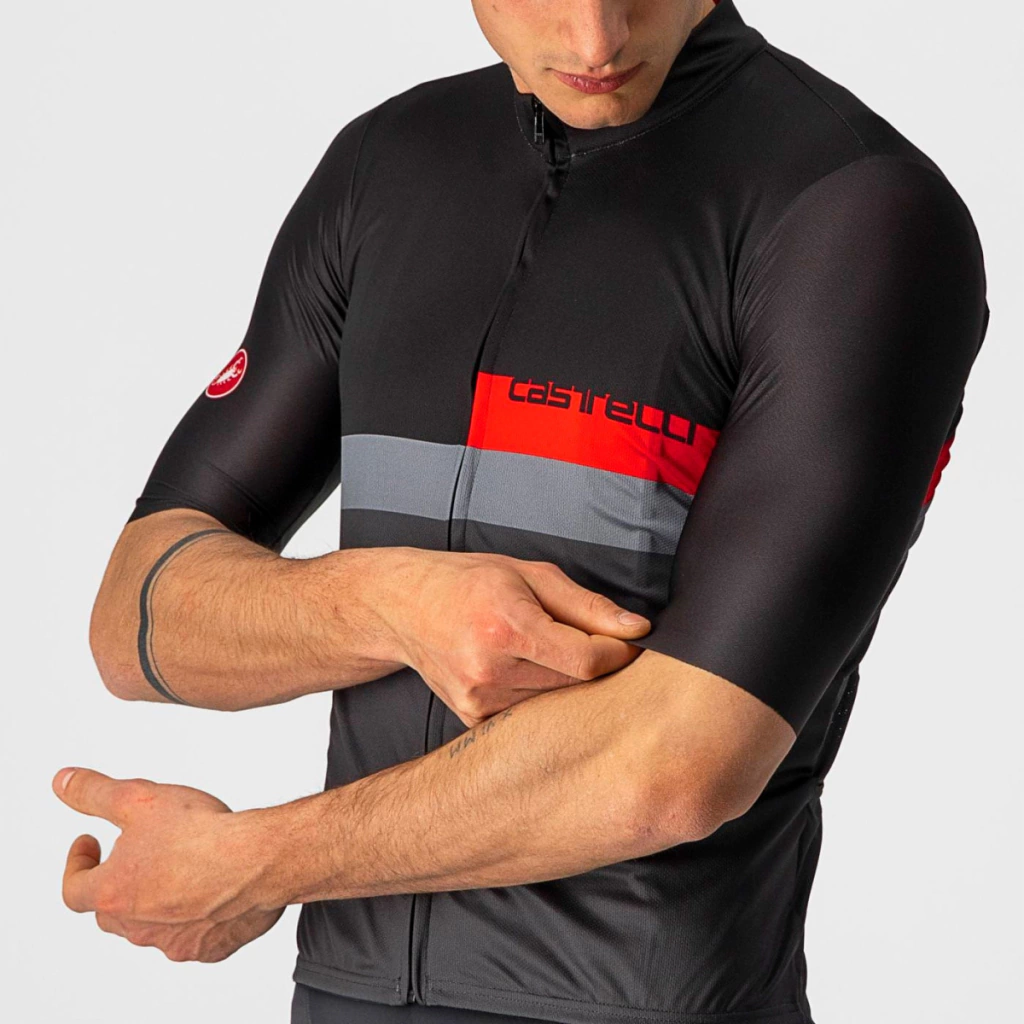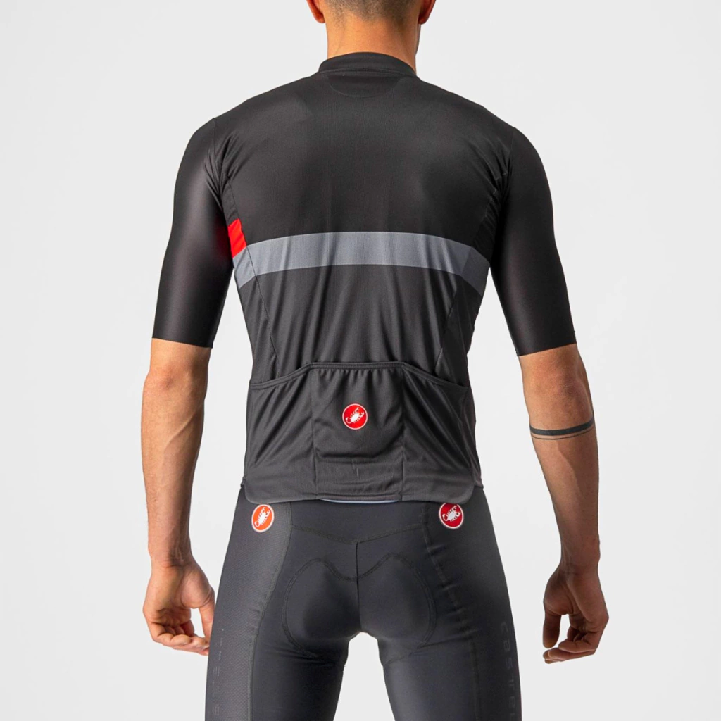Design clássico baseado na construção de Jersey Castelli Squadra que atualiza um corte tradicional com detalhes técnicos como um design de bolso e mangas de corte cru elástico para ótimo ajuste e conforto.
