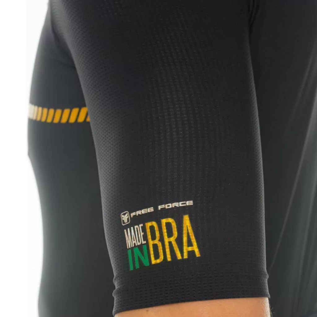 Zíper inteligente (trava para maior segurança ou facilitar a abertura durante o pedal de treino ou competição).