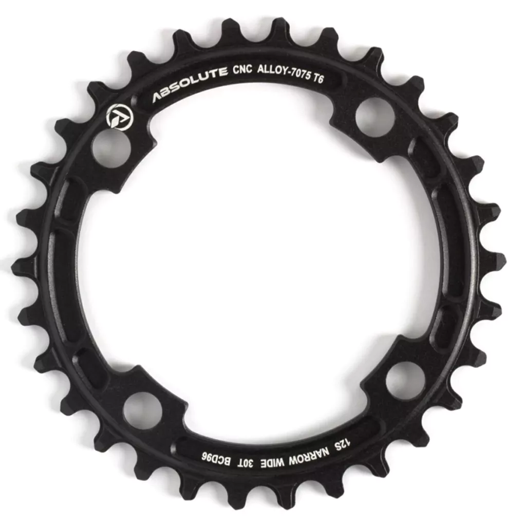 Coroa Absolute Prime 30D 4F BCD 96mm permite uma vasta série de combinações com diversos cassetes.