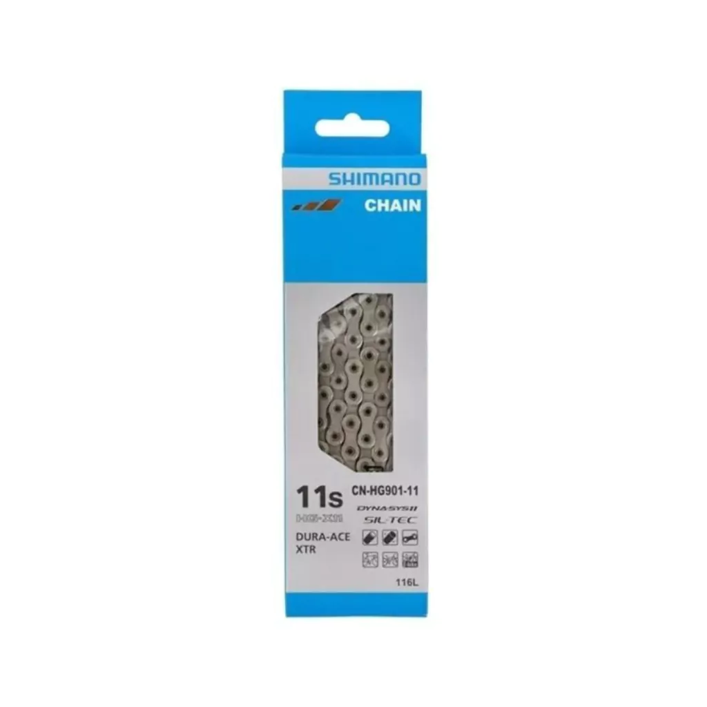 As placas e o rolete da corrente HG901-11 da SHIMANO são totalmente tratadas com SIL-TEC para aumentar a durabilidade e eficiência.