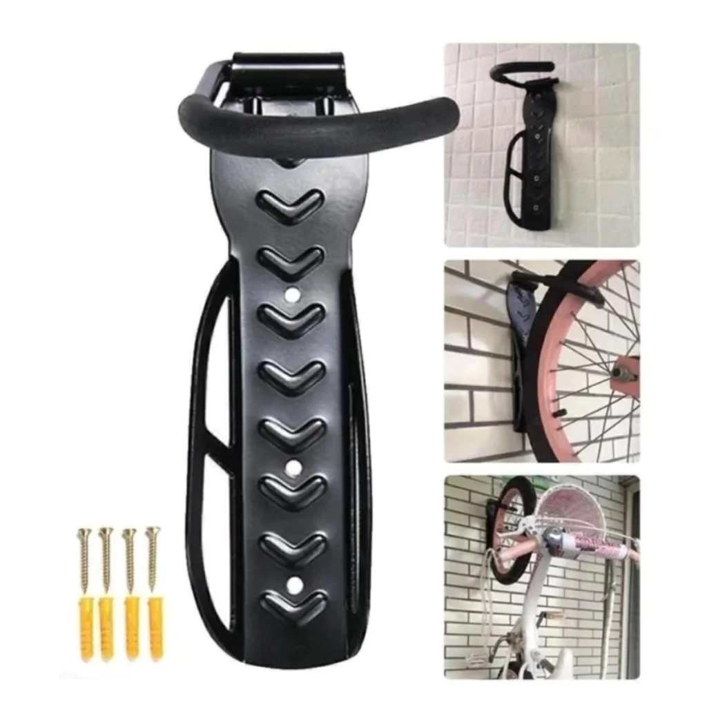 Você passará a guardar a bicicleta unicamente na posição vertical com a maior facilidade e segurança. Um Gancho para você travar as rodas da bicicleta na melhor altura e lugar que convém facilitar você a prender e retirar sempre quando for sair com ela. Um gancho revestidos com borracha para evitar arranhões, e vem com Buchas e parafusos para montagem inclusos no produto.